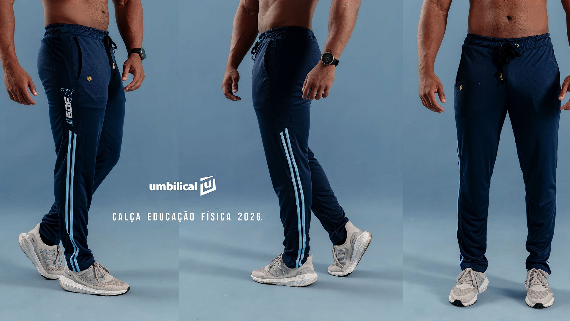 A Umbilical preza pela satisfação total de seus clientes e é por esse motivo que o grande diferencial da Calça Educação Física Azul Marinho 2026 Masculina está no acabamento, onde é dada a devida atenção para cada detalhe, como: viés duplo nas laterais na cor celeste, etiqueta bordada dourada, ilhós dourado, cós e costura reforçados, estampa DISCÓBOLO em silk na lateral, resultando numa peça esportiva e tecnológica com a combinação perfeita de modelagem, caimento, conforto, design e acabamentos exclusivos.