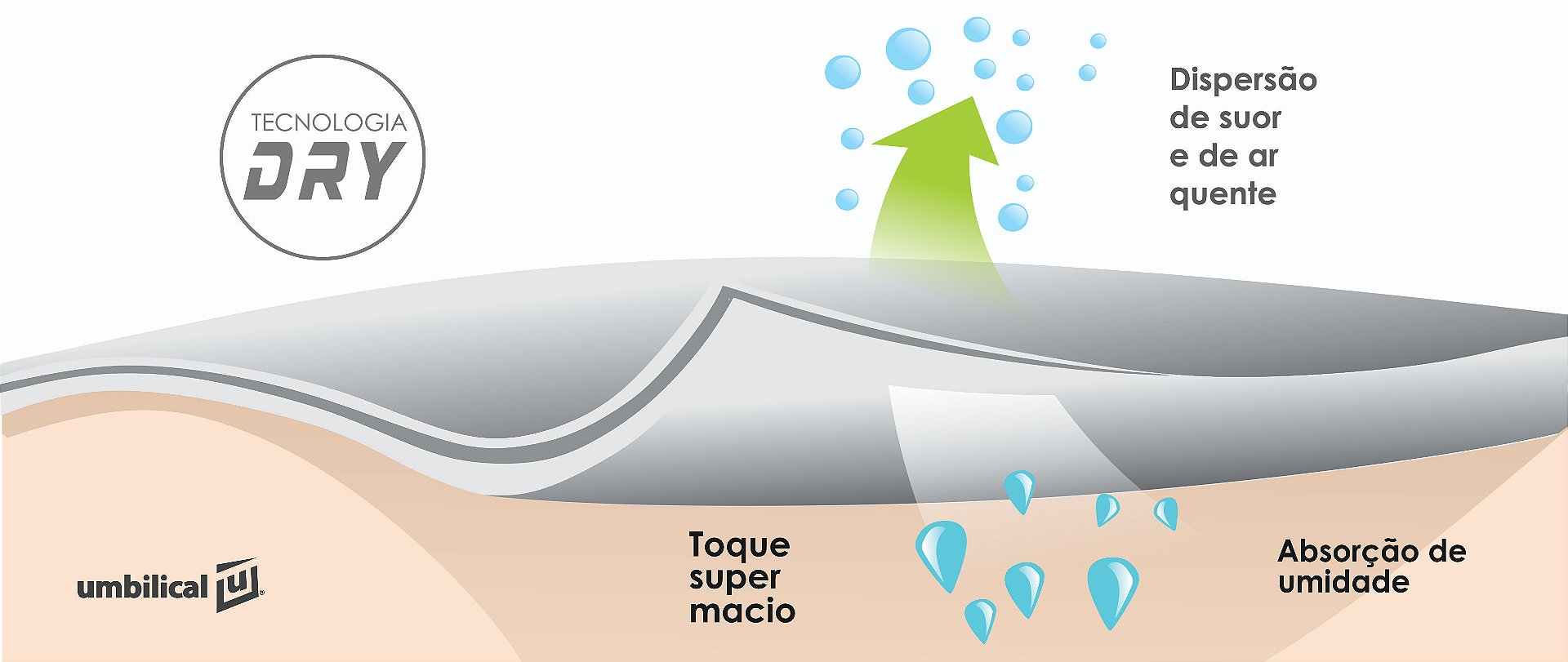 Pensando no seu bem estar e desempenho, a Umbilical utiliza a malha DRY na produção das Camisetas Regatas Basquete Educação Física. Ela possui uma composição de 100% poliéster leve e de dupla camada, o que elimina a sua transparência. Sua construção proporciona conforto, toque macio, secagem super rápida, respirabilidade, leveza e caimento. Possui a tecnologia DRY. Indicado para aplicações em peças para Sportwear, a malha DRY é também utilizada em outras peças da Umbilical, como camisetas, regatas, shorts e bermudas.
